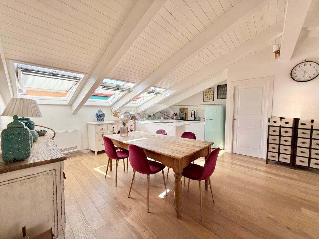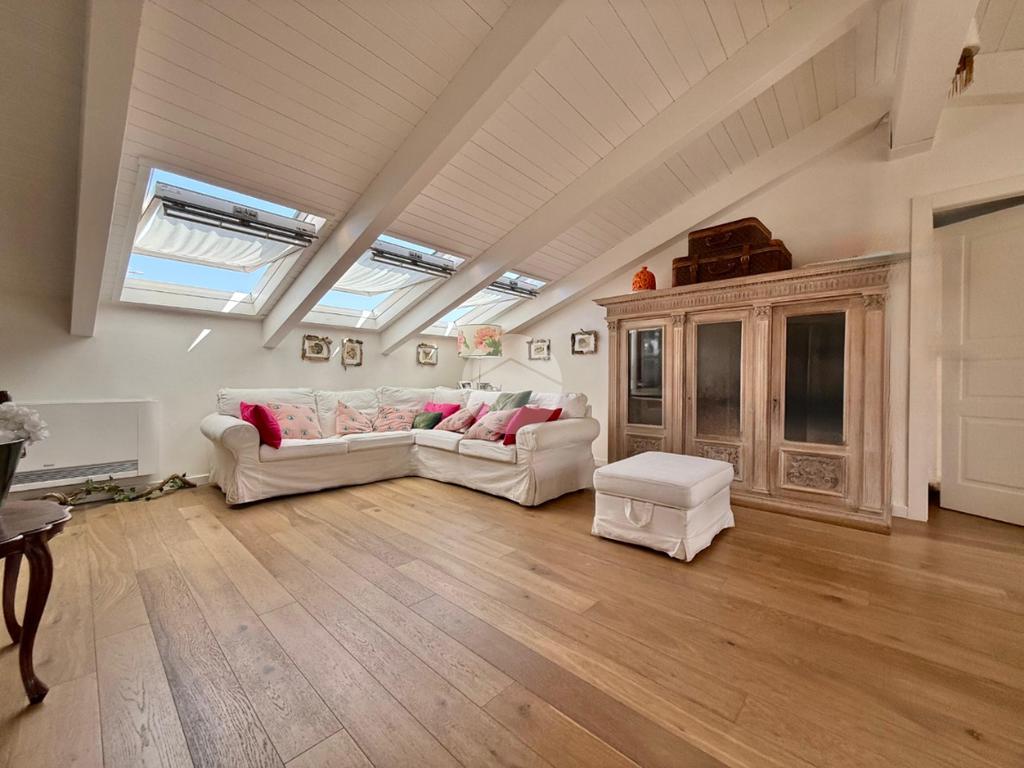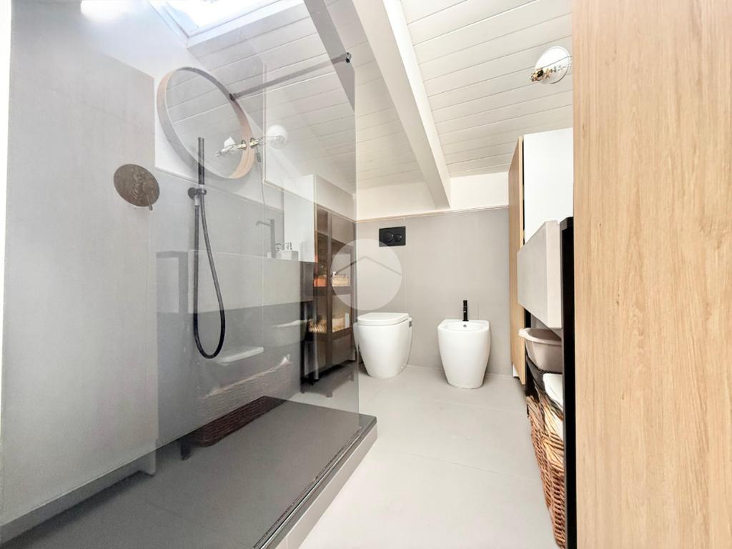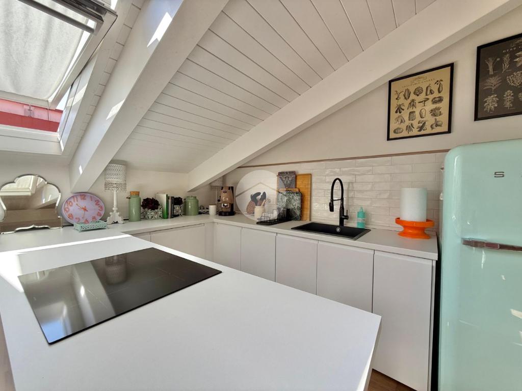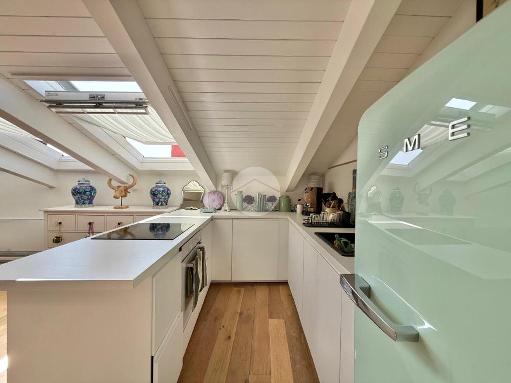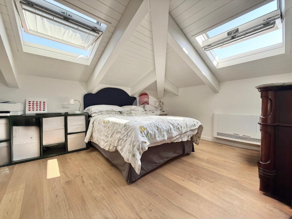 La mansarda è stata completamente ristrutturata, garantendo spazi luminosi e ben distribuiti. La scelta dei materiali e delle finiture di alta qualità conferisce all'ambiente un'atmosfera elegante e accogliente, ci sono inoltre infissi in doppio vetro e condizionatori con predisposizione caldo/freddo.